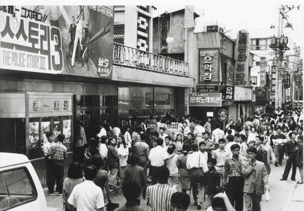 ![]() 1992년 홍콩 영화 ‘폴리스 스토리’가 상영중인 황금동 제일극장. |