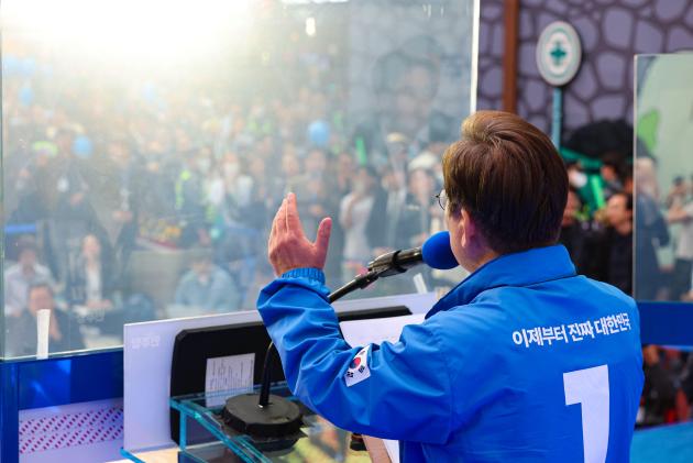 ![]() 더불어민주당 이재명 대선 후보가 19일 서울 마포구 KT&G 상상마당 앞에서 방탄유리가 설치된 유세차에 올라 연설하고 있다. 민주당 전남도당은 경남도당과 함께 20일 오후 3시 화개장터에서 영호남 화합 합동유세를 진행한다. /연합뉴스 |