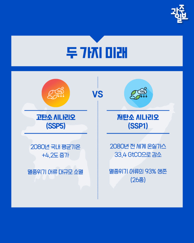 반면 저탄소 배출 시나리오(SSP1)로 전환할 경우 26종(93%)이 생존 가능한 것으로 나타났다.