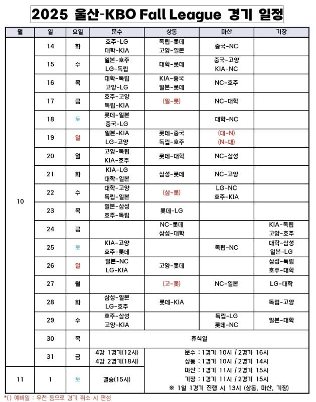 KBO가 주최하고 울산시와 문화체육관광부가 후원하는 2025 울산-KBO Fall League가 14일 개막한다.
