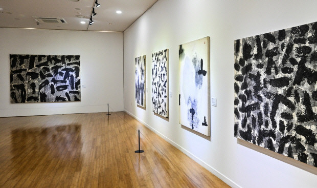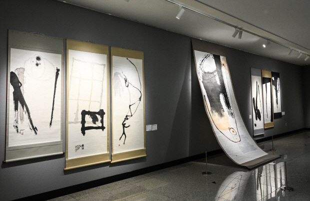 ![]() 전남국제수묵비엔날레 3관 남도전통미술관에 전시된 남천 송수남 작가의 ‘붓의 놀림’. /최현배 기자 |