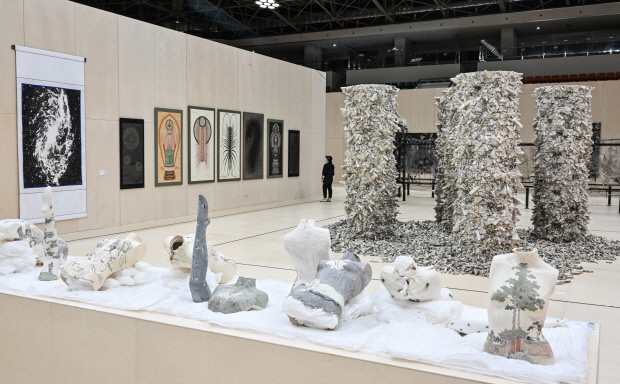 2관 실내체육관 전시는 ‘스타벅스에서 산수화까지’라는 주제처럼 과감했다. 일상의 키워드와 데이터, 전통 산수화가 한 화면 안에 뒤섞이며 수묵의 동시대적 가치를 탐색했다. 동양이 아닌 낯선 문화권의 시선이 덧입혀지면서 세계적 언어로 확장되는 순간이었다.