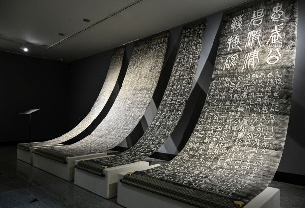 ![]() 2025 전남국제수묵비엔날레 4관 소전미술관에 전시된 소전 손재형 서예가의 ‘충무공 벽파진전첩비’ 탁본. /최현배 기자 |