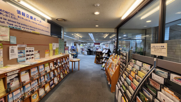![]() 오사카국제교류센터에 다문화 관련 서적들이 비치돼 있다. |