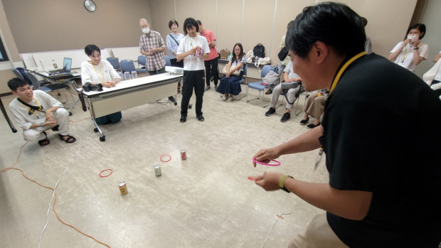 ![]() 오사카국제교류센터에서 참가자들이 아이하우스 de 다문화체험 ‘대만 밤시장에 가보자’를 즐기고 있다. |