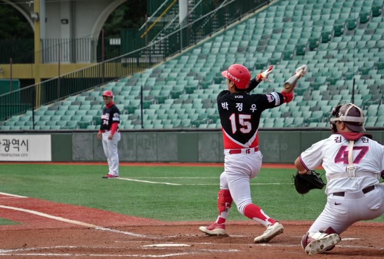 3회초 무사 1루에서 박정우가 좌전 안타를 기록하고 있다. |