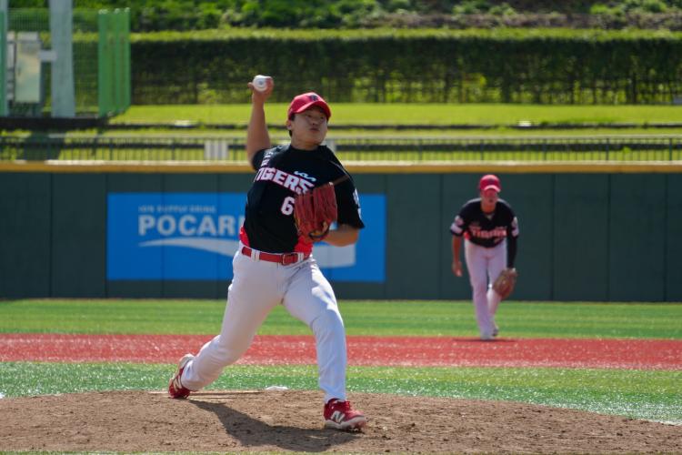 장재혁이 9회말 등판해 공을 던지고 있다. 3개의 볼을 연달아 던졌던 장재혁은 풀카운트 승부 끝에 원성준을 삼진으로 잡은 뒤 1사에서 어준서를 볼넷으로 내보냈지만, 전태현을 상대로 유격수 땅볼을 유도하면서 6-4-3 병살타로 경기를 마무리했다. |