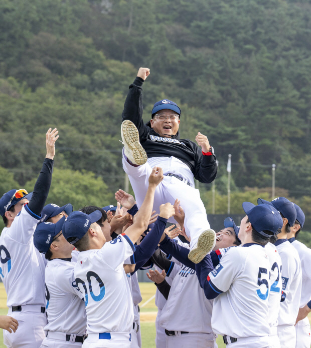 ![]() 26일 함평 야구장에서 열린 제15회 무등기 광주전남 사회인 야구대회 무등리그 결승에서 우승을 차지한 센프렌즈 선수들이 김경노 감독을 헹가레치며 우승의 기쁨을 만끽하고 있다. /김진수 기자 jeans@kwangju.co.kr |