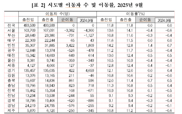 ![]() 2025년 9월 시·도별 인구 이동 현황 표<국가데이터처 제공> |