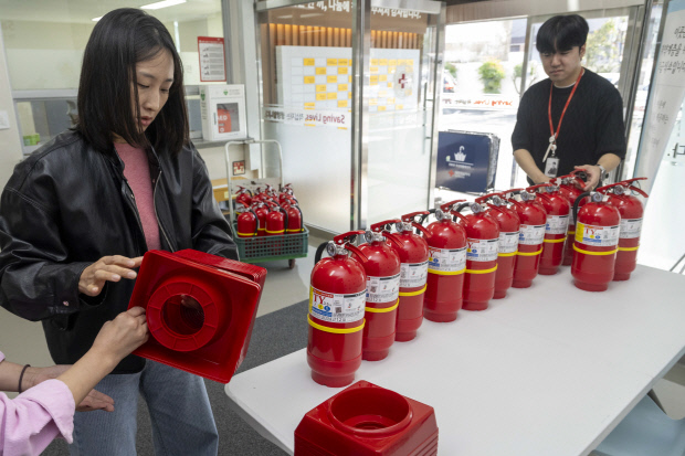 ![]() 29일 광주시 북구 임동 대한적십자사 광주전남지사에서 관계자들이 다문화 이주민 가정의 화재 예방과 안전한 주거 환경 조성을 위해 광주 5개구 다문화가족센터에 배부할 가정용 소화기 63개를 준비하고 있다. /김진수 기자 jeans@ |