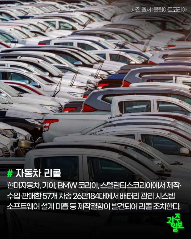 현대자동차, 기아, BMW 코리아, 스텔란티스코리아에서 제작·수입·판매한 57개 차종 26만184대에서 배터리 관리 시스템 소프트웨어 설계 미흡 등 제작결함이 발견되어 리콜 조치한다.