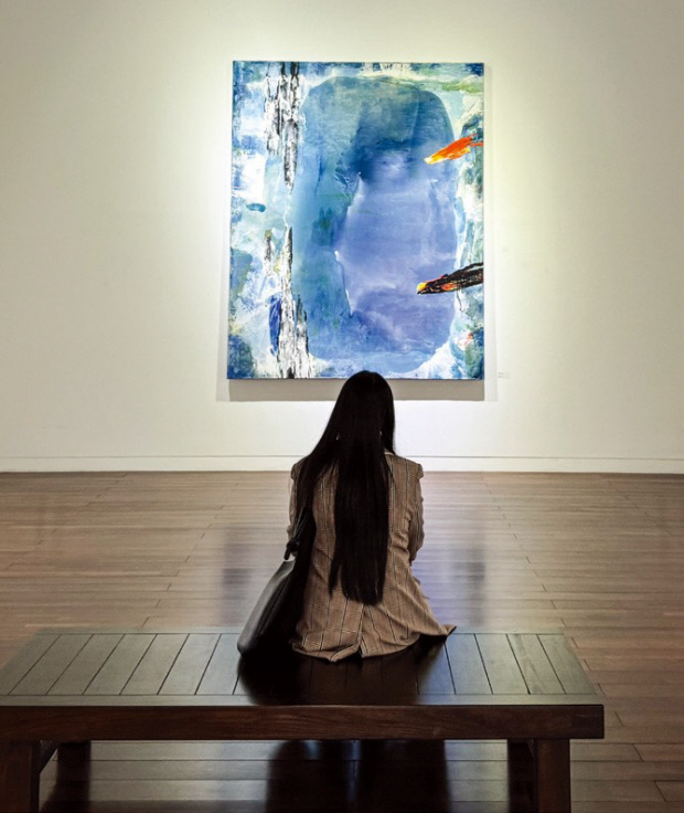 ![]() 보성우종미술관에서 관람객이 김유섭 작가의 작품을 감상하고 있다. |