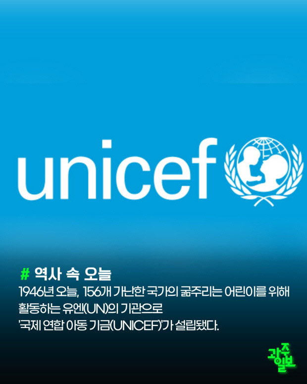 1946년 오늘, 156개 가난한 국가의 굶주리는 어린이를 위해 활동하는 유엔(UN)의 기관으로 ‘국제 연합 아동 기금(UNICEF)’가 설립됐다.
