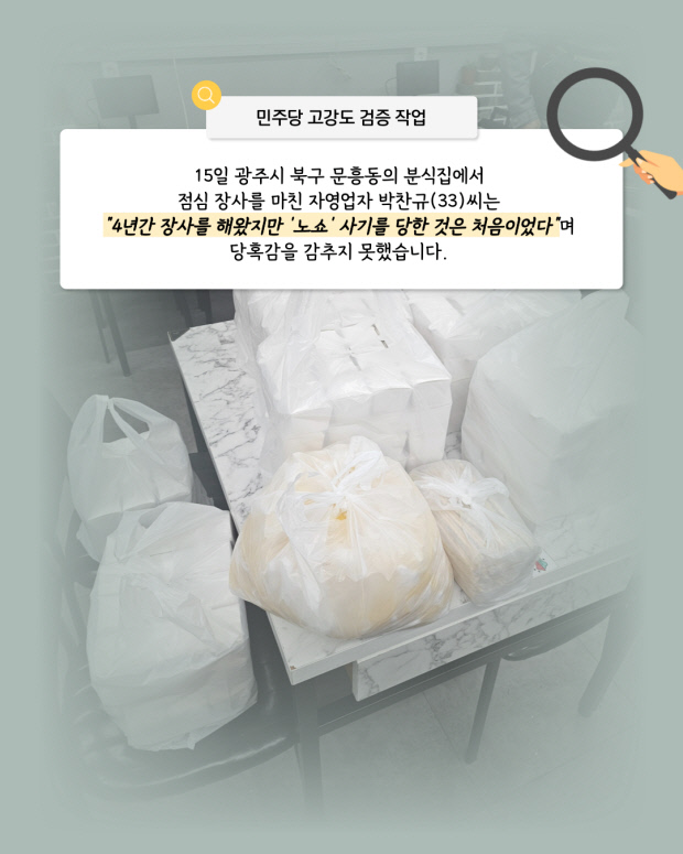 광주시 북구 문흥동의 분식집에서 점심 장사를 마친 자영업자 박찬규(33)씨는 “4년간 장사를 해왔지만 ‘노쇼’ 사기를 당한 것은 처음이었다”며 당혹감을 감추지 못했습니다.