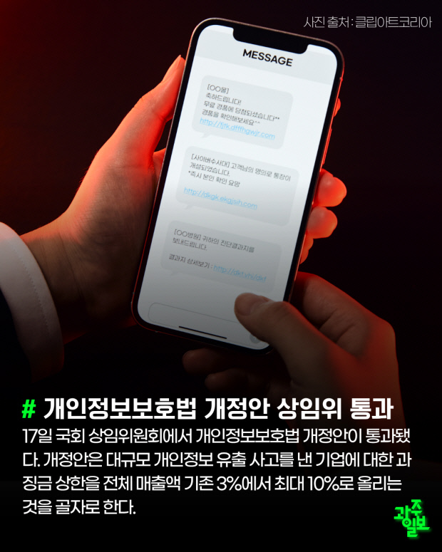 17일 국회 상임위원회에서 개인정보보호법 개정안이 통과됐다. 개정안은 대규모 개인정보 유출 사고를 낸 기업에 대한 과징금 상한을 전체 매출액 기존 3%에서 최대 10%로 올리는 것을 골자로 한다.