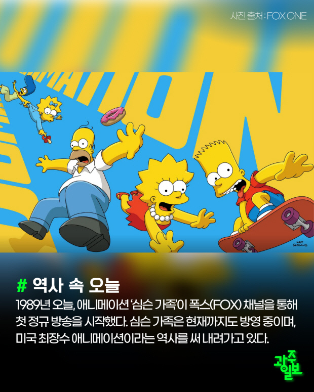 1989년 오늘, 애니메이션 ‘심슨 가족’이 폭스(FOX) 채널을 통해 첫 정규 방송을 시작했다. 심슨 가족은 현재까지도 방영 중이며, 미국 최장수 애니메이션이라는 역사를 써 내려가고 있다.