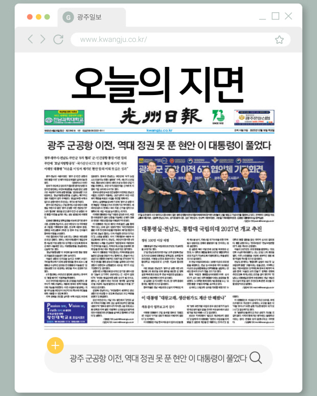 [오늘의 지면] 광주 군 공항의 무안 통합 이전…마침내 해결 됐다