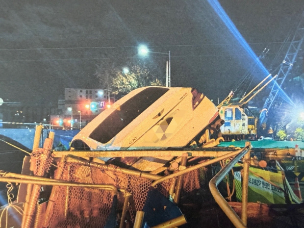 A씨는 도시철도 2호선 공사 현장으로 돌진해 시설물을 들이받고 올라타는 사고를 낸 것으로 조사됐다.