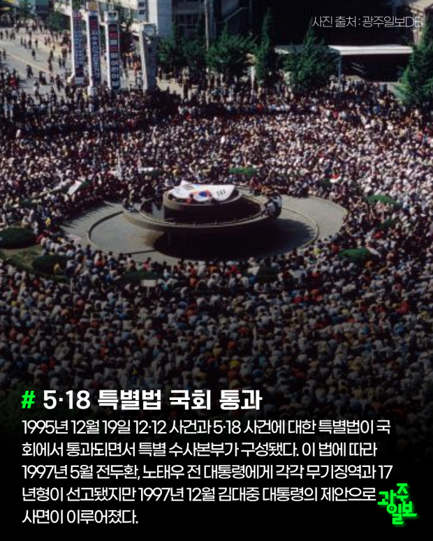 1995년 12월 19일 12·12 사건과 5·18 사건에 대한 특별법이 국회에서 통과되면서 특별 수사본부가 구성됐다. 이 법에 따라 1997년 5월 전두환, 노태우 전 대통령에게 각각 무기징역과 17년형이 선고됐지만 1997년 12월 김대중 대통령의 제안으로 사면이 이루어졌다.