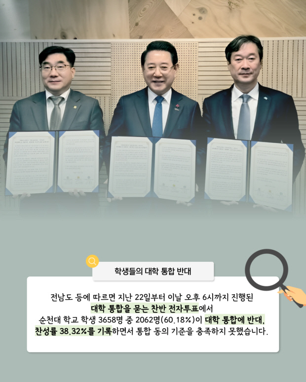 [오늘의 지면] 순천대·목포대 대학 통합…순천대 학생들 반대로 무산