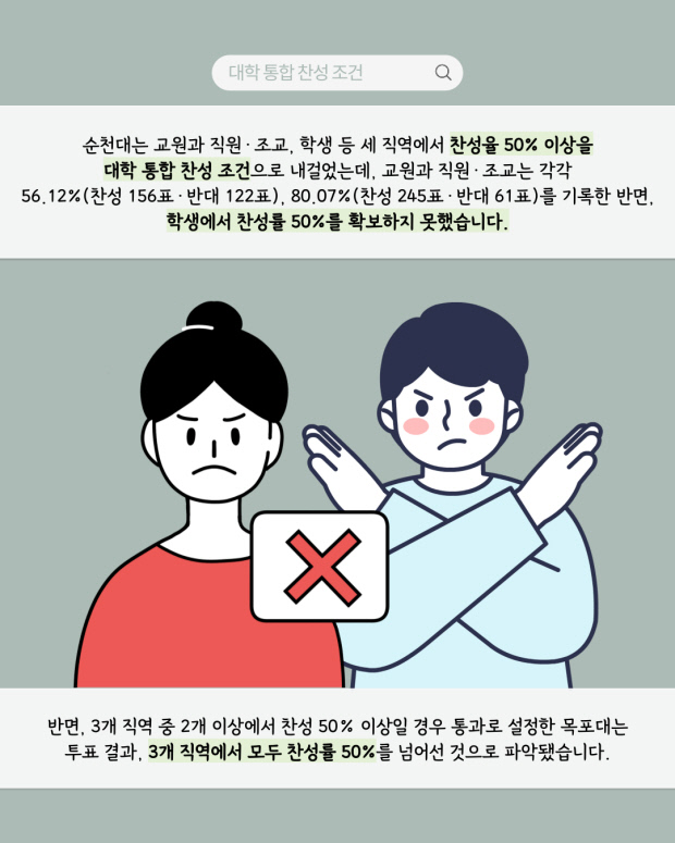 반면, 3개 직역 중 2개 이상에서 찬성 50% 이상일 경우 통과로 설정한 목포대는 투표 결과, 3개 직역에서 모두 찬성률 50%를 넘어선 것으로 파악됐습니다.