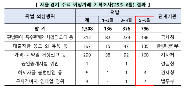 국토교통부는 25일 ‘2025년 하반기 부동산 이상거래 집중 기획조사’ 결과를 발표하고 위법 의심 거래 1002건을 적발했다고 밝혔다. 이번 조사는 서울·경기 주택 이상거래, 실거래가 띄우기, 특이 동향 지역 거래 등 3개 분야를 대상으로 진행됐다.